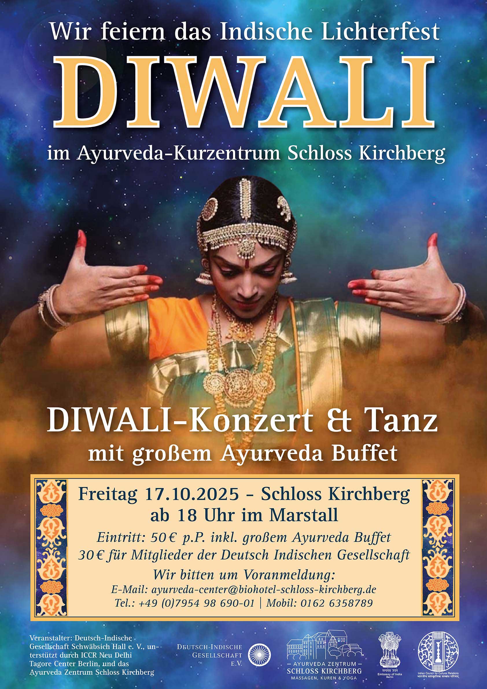 Diwali steht vor der Tür! Das bedeutendste Fest des Hinduismus ist nicht nur ein kulturelles Highlight, sondern auch eine wunderbare Gelegenheit, Licht, Hoffnung, Freude und Frieden in unser Leben zu bringen. Dieses Fest wird in Indien über mehrere Tage hinweg gefeiert. Die Deutsch-Indische Gesellschaft Schwäbisch Hall/ Kirchberg e. V. und das Ayurveda-Kurzentrum Schloss Kirchberg feiert das Lichterfest am Freitag, 17. Oktober ab 18 Uhr im Marstall von Schloss Kirchberg und lädt dazu ganz herzlich ein.